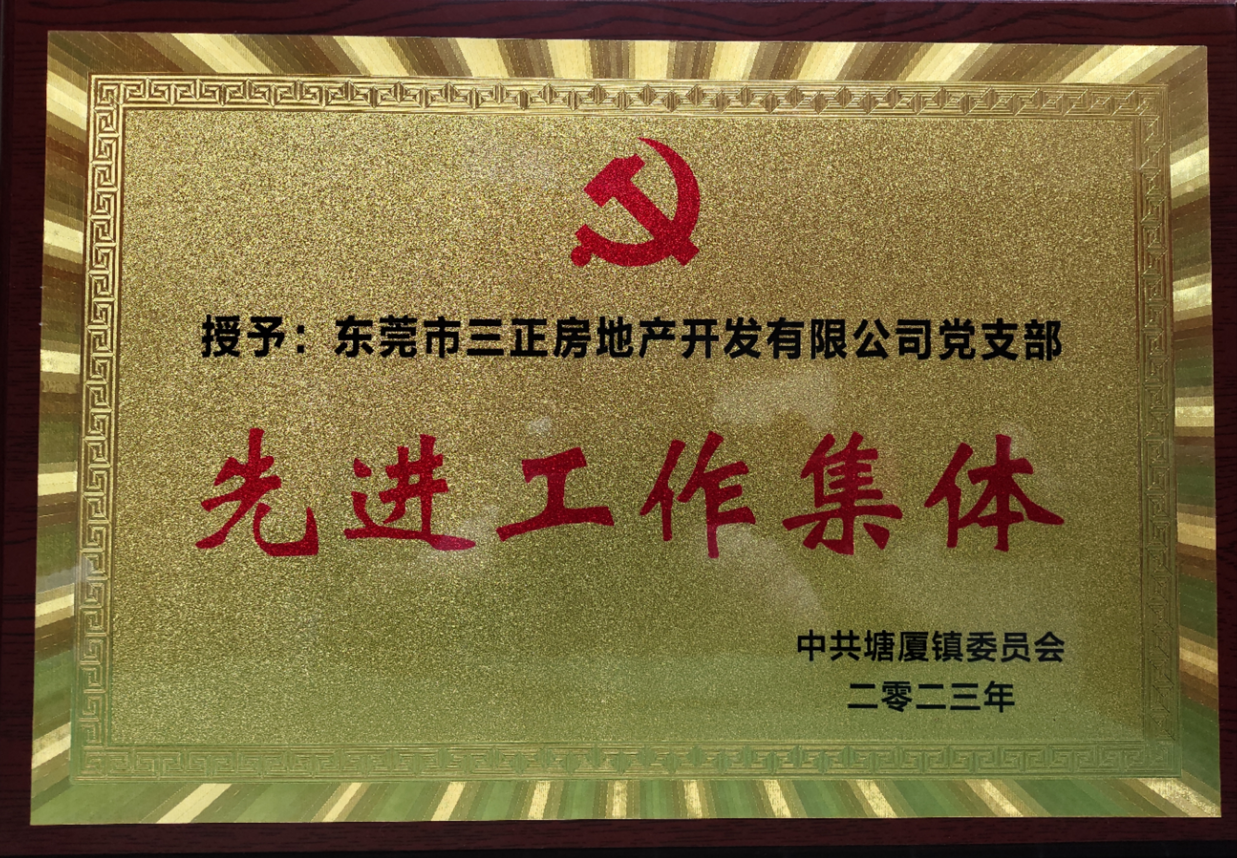 三正房地產(chǎn)黨支部喜獲“2023年度塘廈鎮(zhèn)黨建工作先進(jìn)單位”